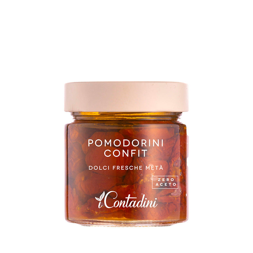 Experience a symphony of sweetness with Lifeitaly Confit Cherry Tomatoes. "Confit" is a traditional preservation method that involves slow-cooking ingredients at low temperatures to concentrate their flavor and achieve a melt-in-your-mouth texture. We take the finest Sicilian cherry tomatoes, bathe them in premium extra virgin olive oil, and gently cook them with a touch of sea salt and aromatic herbs until they are perfectly tender and bursting with natural sugars.